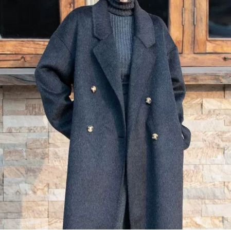 金色のボタンが映えるダブルブレストで、時代を超えた上品で洗練された印象を演出