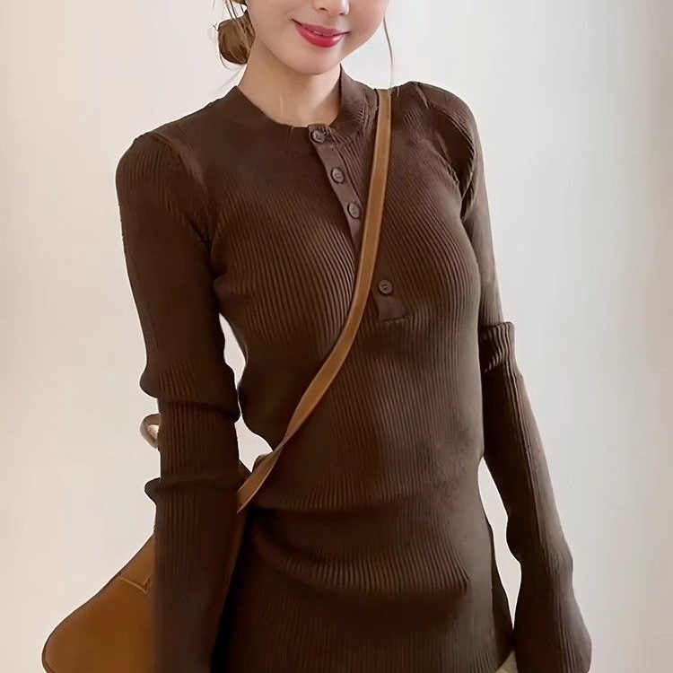 縦のリブ編みが体のラインを美しく見せながら程よくフィットし、上品で洗練された印象を演出