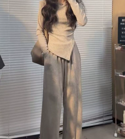 ロングスリーブトップス+スリムロングパンツのセットアップ