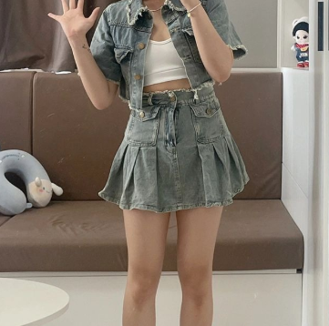・ショート丈ジャケット×プリーツスカートの美バランスセットアップ
