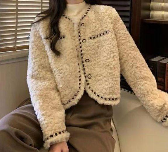 ふわふわのボア素材が暖かく優しい印象を与える、レディースカジュアルファッションにぴったりのアウターです。