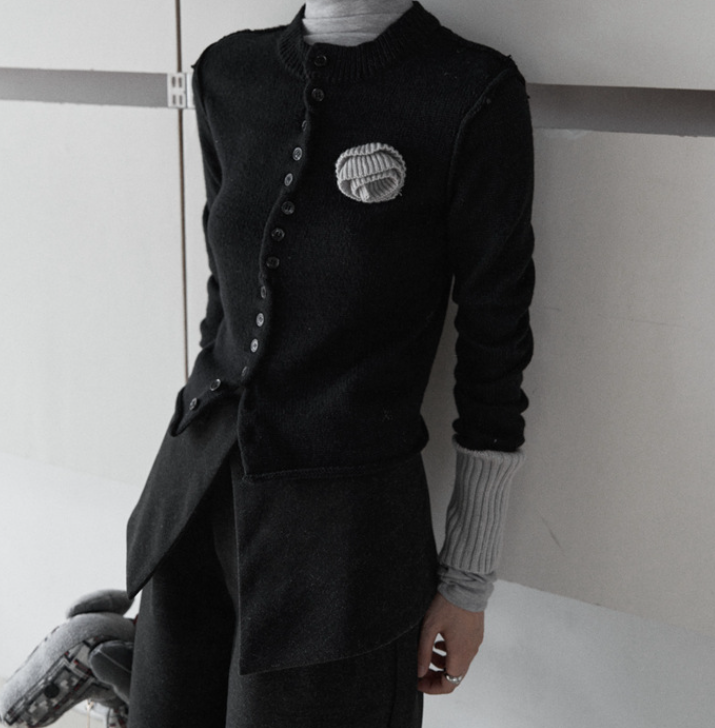 胸部分に施された装飾的なワッペンが程よい個性を表現し、シンプルながらも特別感を演出