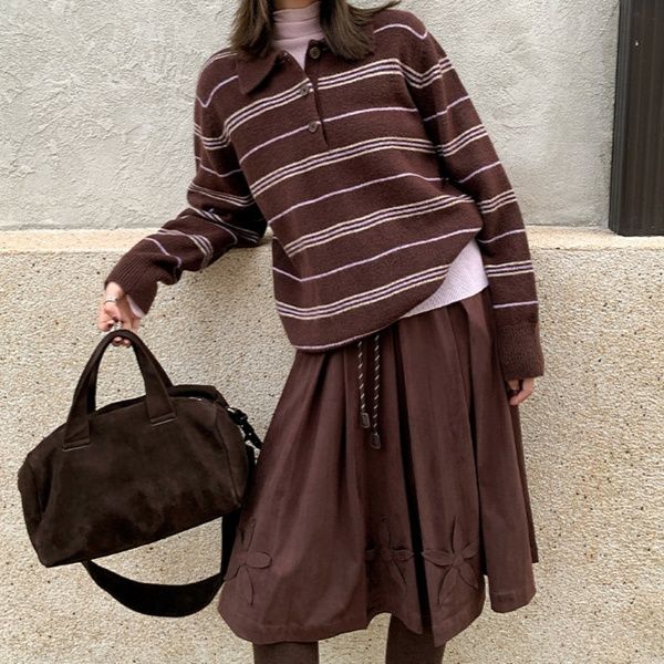 ・同系色のスカートやワイドパンツと合わせると統一感のある大人コーデに
