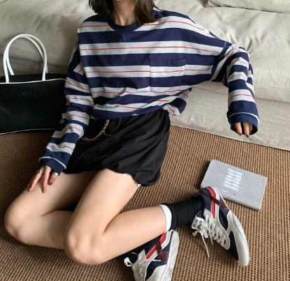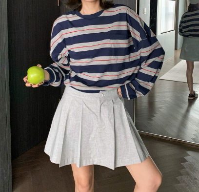 リラックス感のあるオーバーサイズシルエットと、爽やかなボーダー柄が魅力の長袖トップス。