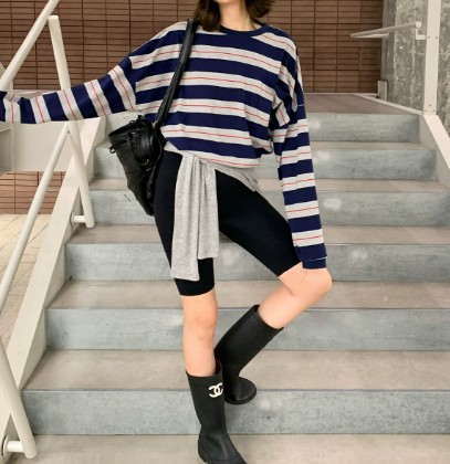 落ち着いた配色のボーダーストライプが洗練された雰囲気を演出し、幅広いスタイリングに対応