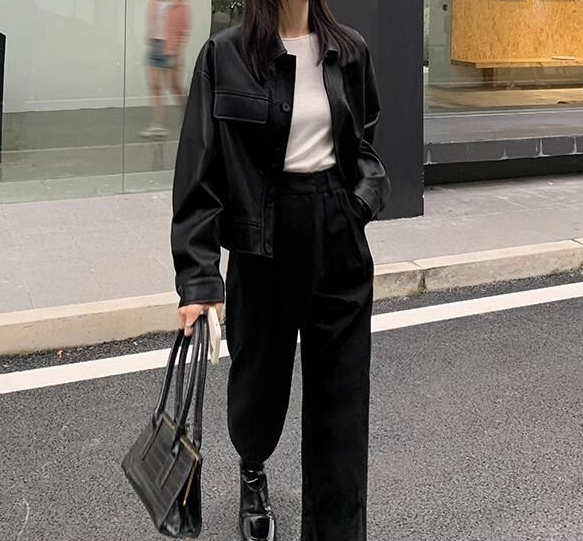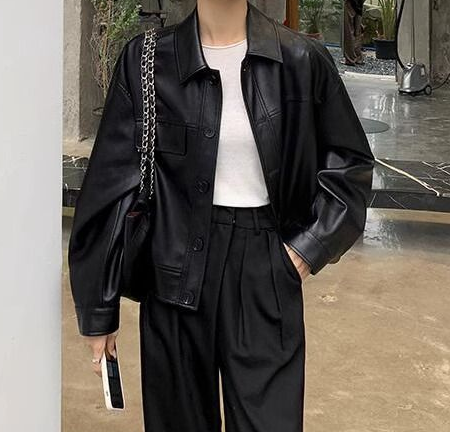 リアルレザー風の質感で、大人っぽいコーデが即仕上がる上品素材。