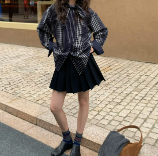 ギンガムチェックとストライプが巧みに組み合わされた斬新なデザインで他とは違う個性を演出