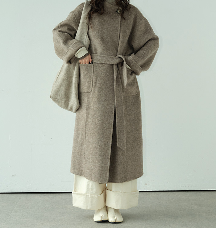 柔らかな羊毛と希少なヤクをブレンドした、高級感あふれるロングコート。