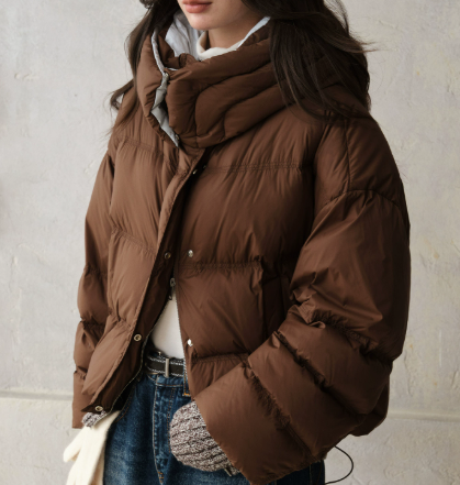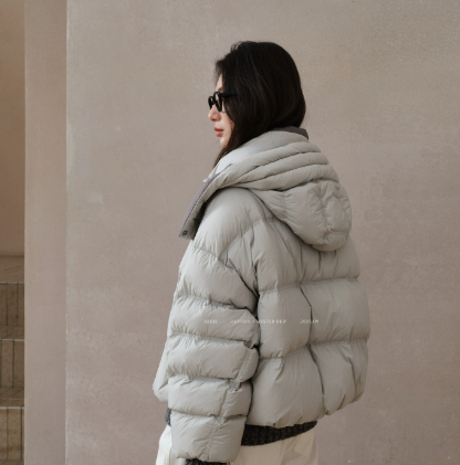 異素材切替のキルティングデザインが目を惹く、冬のおしゃれを格上げするショートダウン。