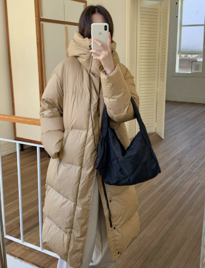 厚手のダウンフィルが全体にたっぷりと詰まっており、暖かさと柔らかな質感を実現