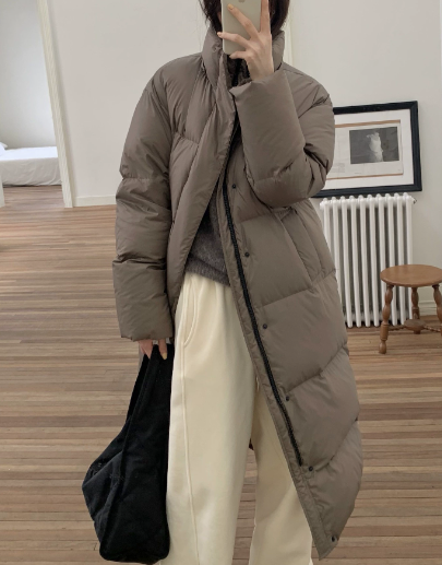 膝下まで覆うロング丈で防寒性が高く、洗練されたスタイリッシュな印象を演出